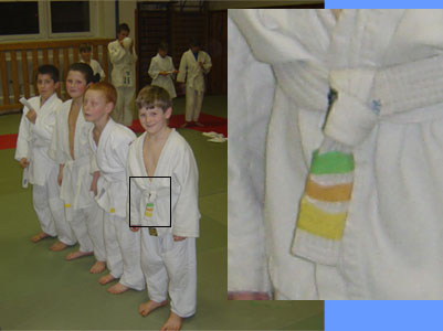 K získání 5. kyu je potřeba získat spoustu nových dovedností a vědomostí. Naučit se gymnastiku, pády a techniky dá začátečníkovi spoustu práce, stejně jako názvosloví, historie, pravidla a etiketa juda. Zvládnout všechno najednou je pro malé judisty (5-8 let) příliš obtížné. Proto jsme v našem oddíle vypracovali systém tzv. šerpiček. Postupné zvládnutí požadavků zkušebního řádu je u nás během přípravného období ohodnocováno šerpičkami v barvě jednotlivých kyu, které si děti po splnění zkoušky přišijí na svůj pásek. Získání co nejvyšší šerpičky je prestižní záležitostí, která výrazně motivuje naše nejmenší členy. Po získání hnědé šerpičky je malý judista připraven hravě složit svou první opravdovou zkoušku a získat vytoužený žlutý pásek.