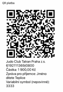 Cena 1900,- Kč – zahrnuje ubytování, stravu, pronájem tělocvičny a cenu za plavecký bazén. (peníze posílejte na účet 6192111369/0800 a do poznámky napište jméno a příjmení dítěte a Teplice VS : 3333 ) – QR platba níže